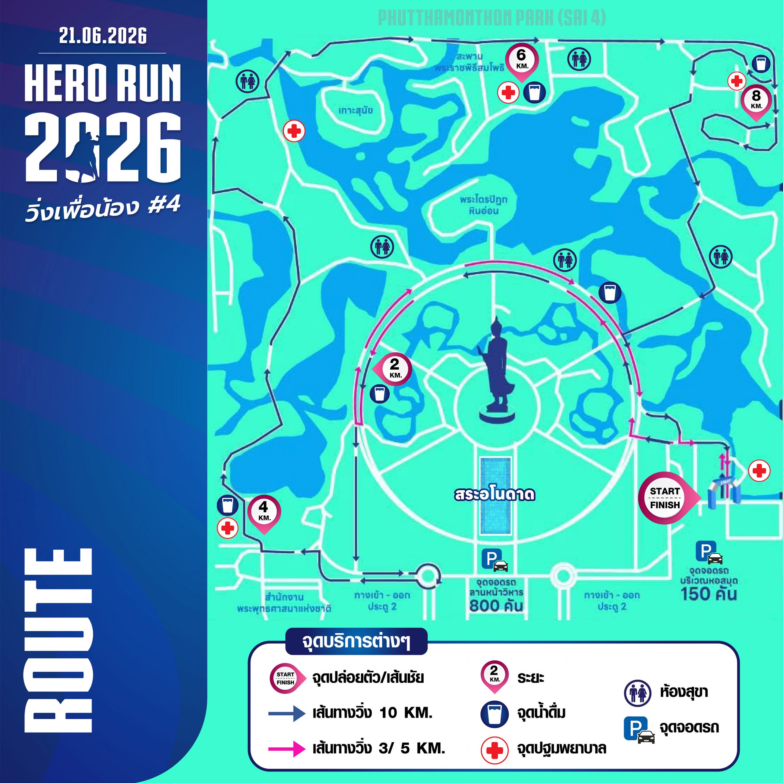 - รับเสื้อ-เบอร์ รอบเดียว วันเสาร์ที่ 20 มิถุนายน 2569 เวลา 11.00 - 18.00 น. ณ บริเวณจัดงานสวนพุทธมณฑล สาย 4